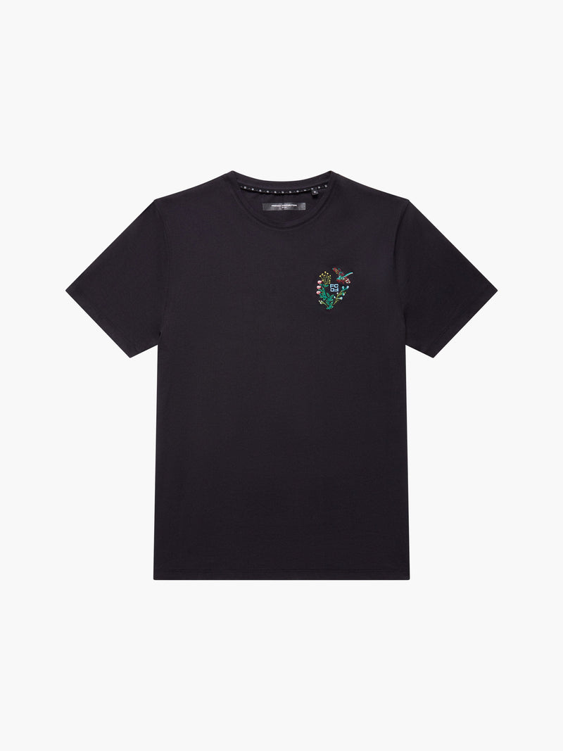 Intricate embroidery sets this graphic tee apart from the rest. Our Embroidered Dragonfly Organic Graphic T-Shirt breathes life into the casual short sleeve silhouette with a multi-coloured graphic depicting a dragonfly, flowers and French Connection logo in detailed embroidery.