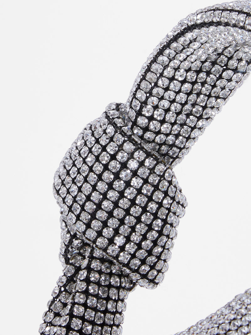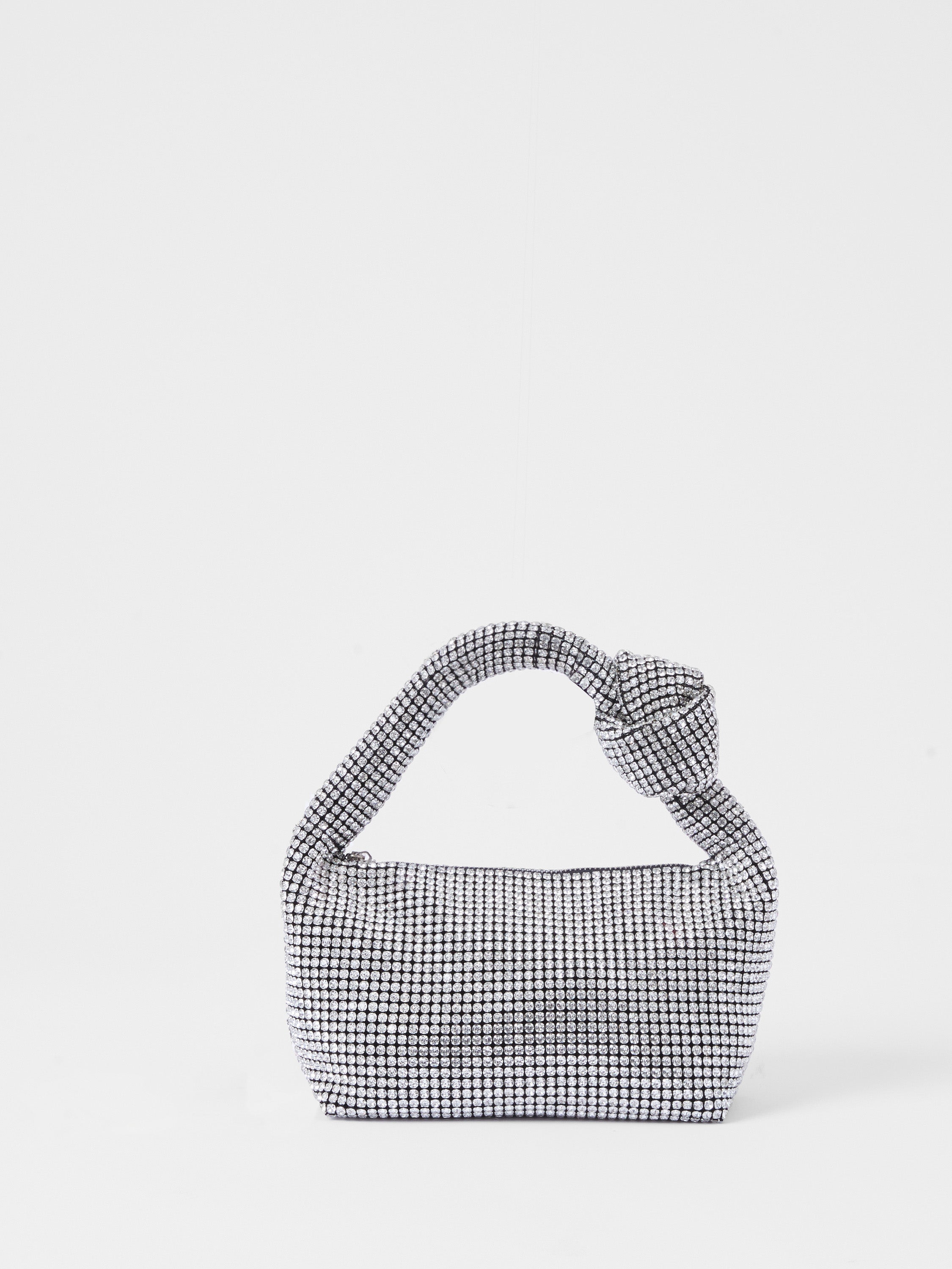 Our Diamante Knot Bag is not your regular bag. This sparkling accessory is set to make a glitz statement, complimenting your ensembles with its scintillating diamante embellished body and handle with a modern knot design. Keep your valuables safe with a secure metal zip fastening and additional zipped inner pocket.