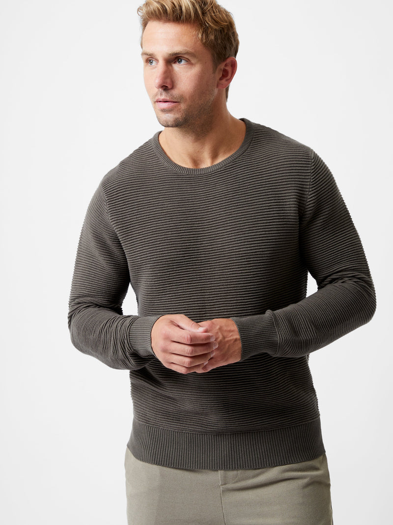 Our Ottoman Jumper takes a classic silhouette and brings it to life in a soft, textured manner. A staple jumper that features a long sleeved silhouette with a crew neck and ottoman texture, ideal for layering with a t-shirt.