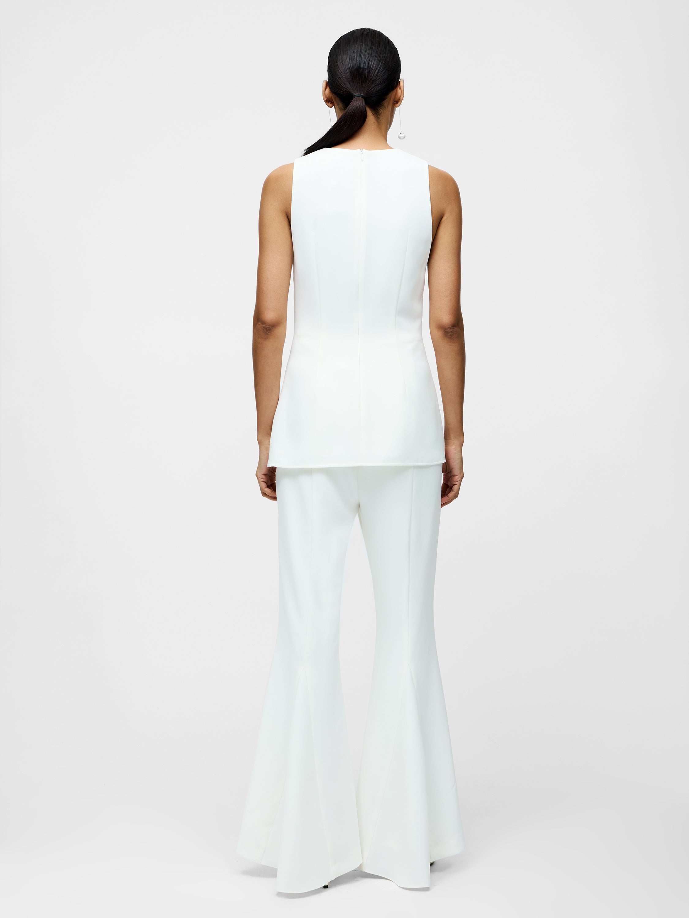 High waisted and highly chic. Our Arlette Flared Leg Trousers present a flared high waisted fit, in a flowing white fabric.