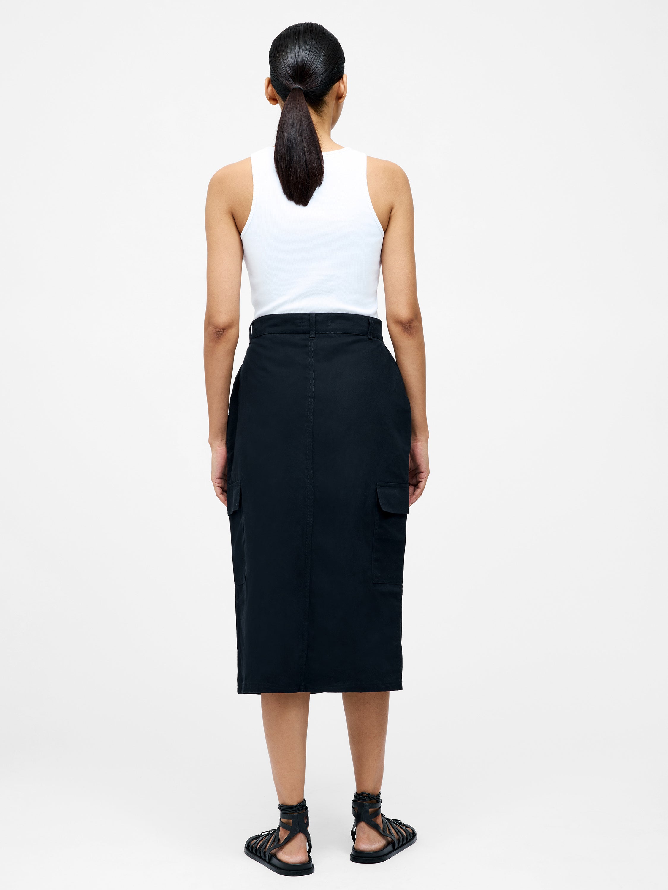 Utility chic just got an upgrade. Our Cargo Midi Skirt features sleek pocket detailing, a front slit and a structured waistband - combining function with a sharp, modern edge.