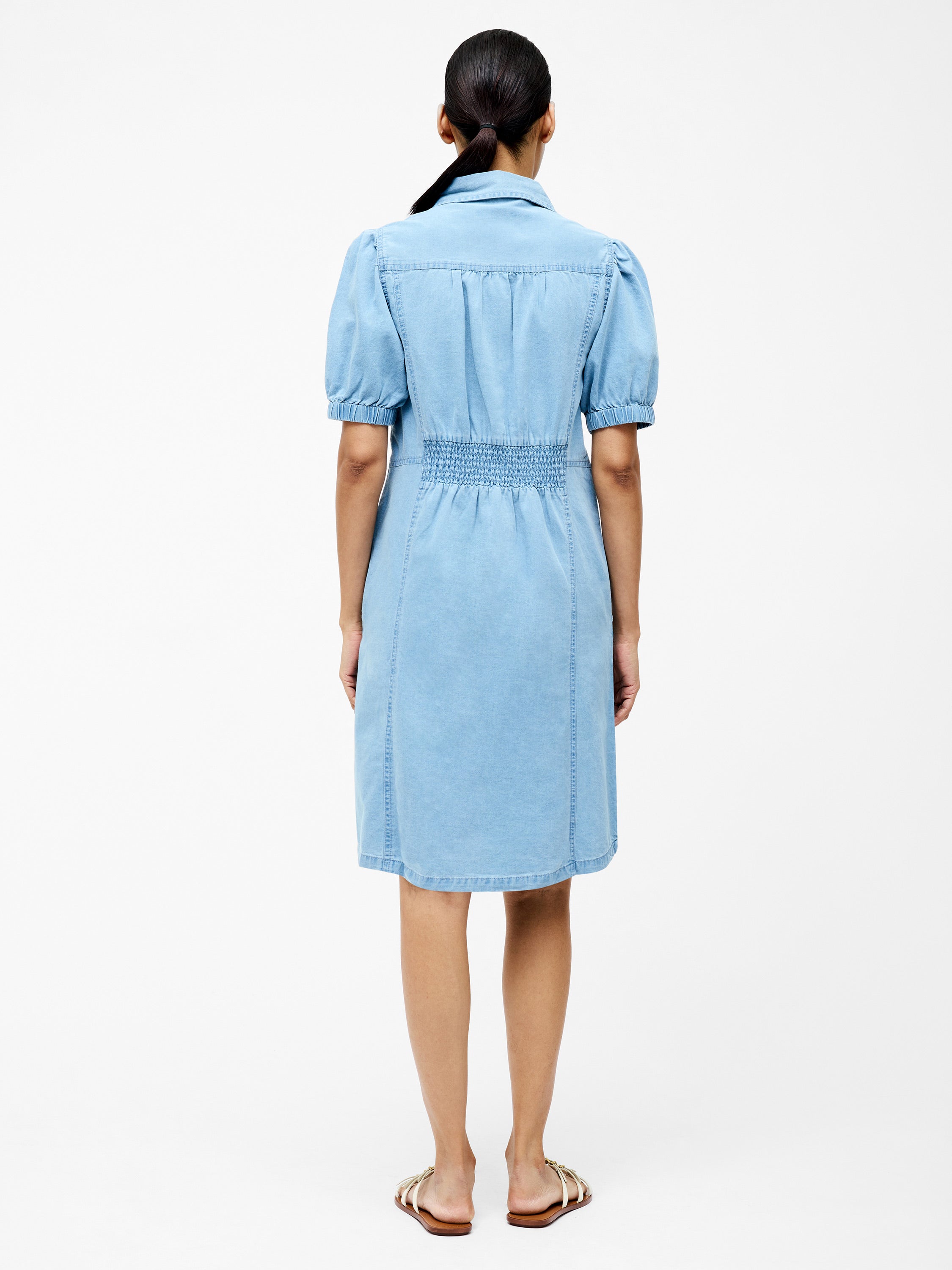 Say hello to summer's answer to smart-casual. Our Chambray Button Through Shirt Dress features knee-length silhouette in light chambray, short puff sleeves, a pointed collar and 2 handy side pockets.