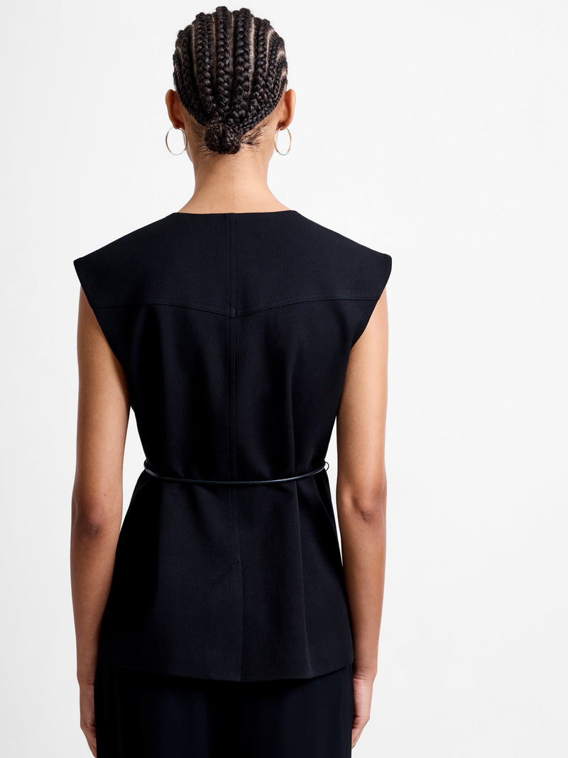 Utility, made polished. Our Clover Tie Waistcoat features sharp shoulders, flap breast pockets and concealed buttons, cinched with a slim waist belt.