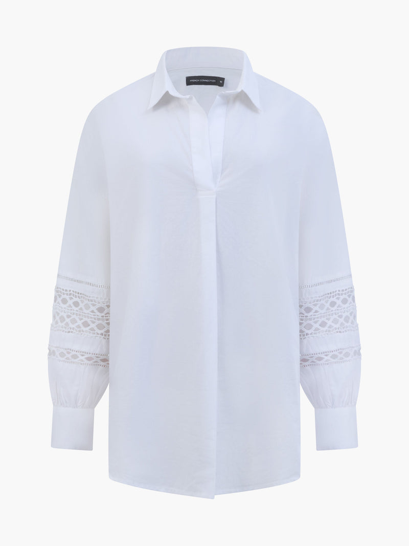 Crochet Trim Poplin Long Sleeve Popover Shirt