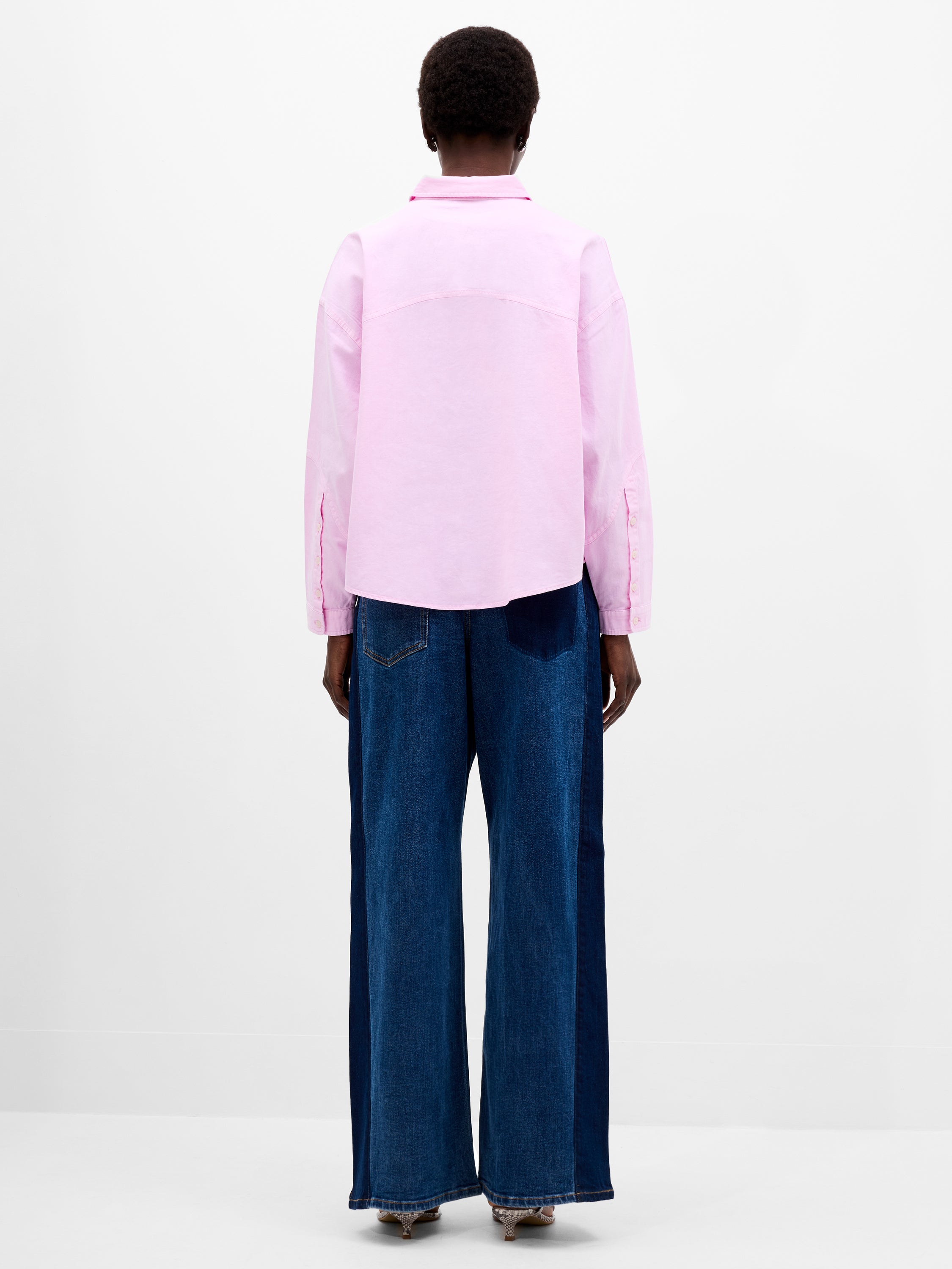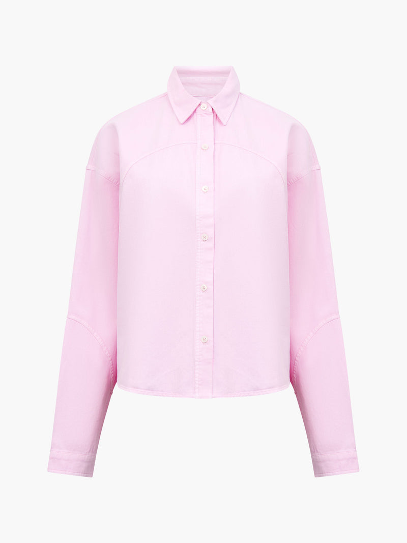 Denim just got a dreamy upgrade. In a sweet pink shade, our Dana Denim Seamed Shirt stands out with its curved seam detailing, dropped shoulders and a structured yet relaxed silhouette.
