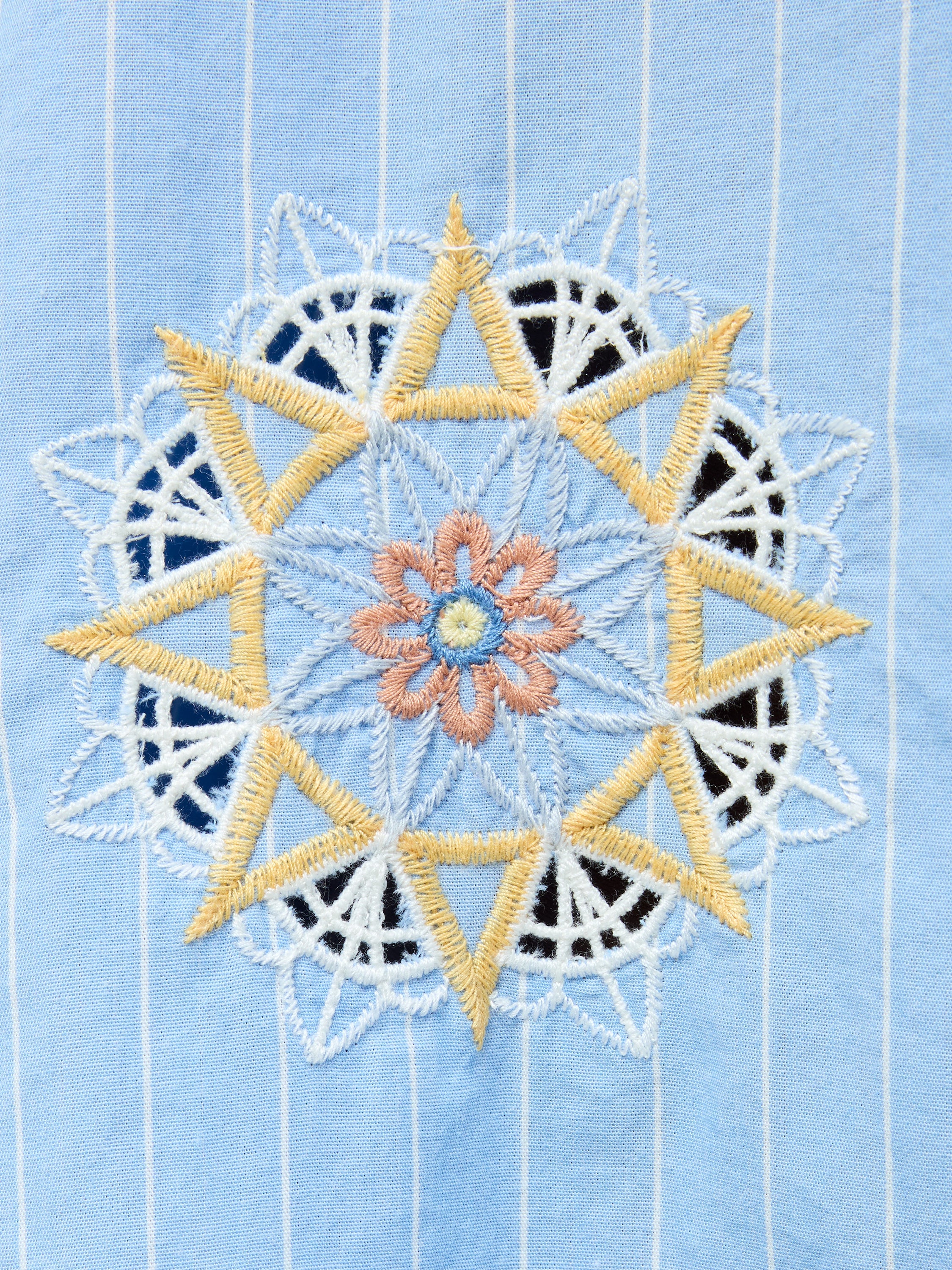• Fabric: lightweight, poplin, stripe print, embroidery, light blue + white
