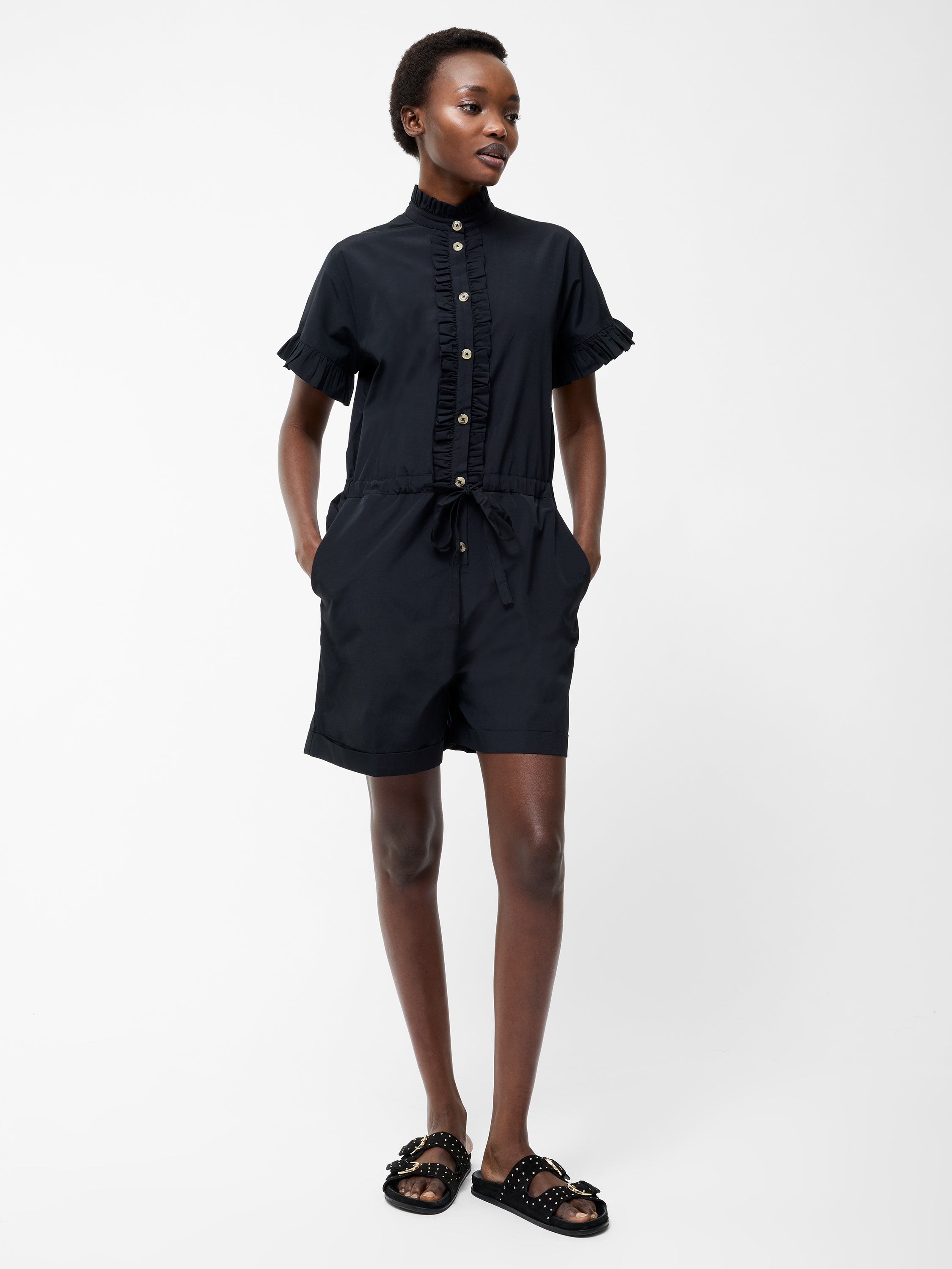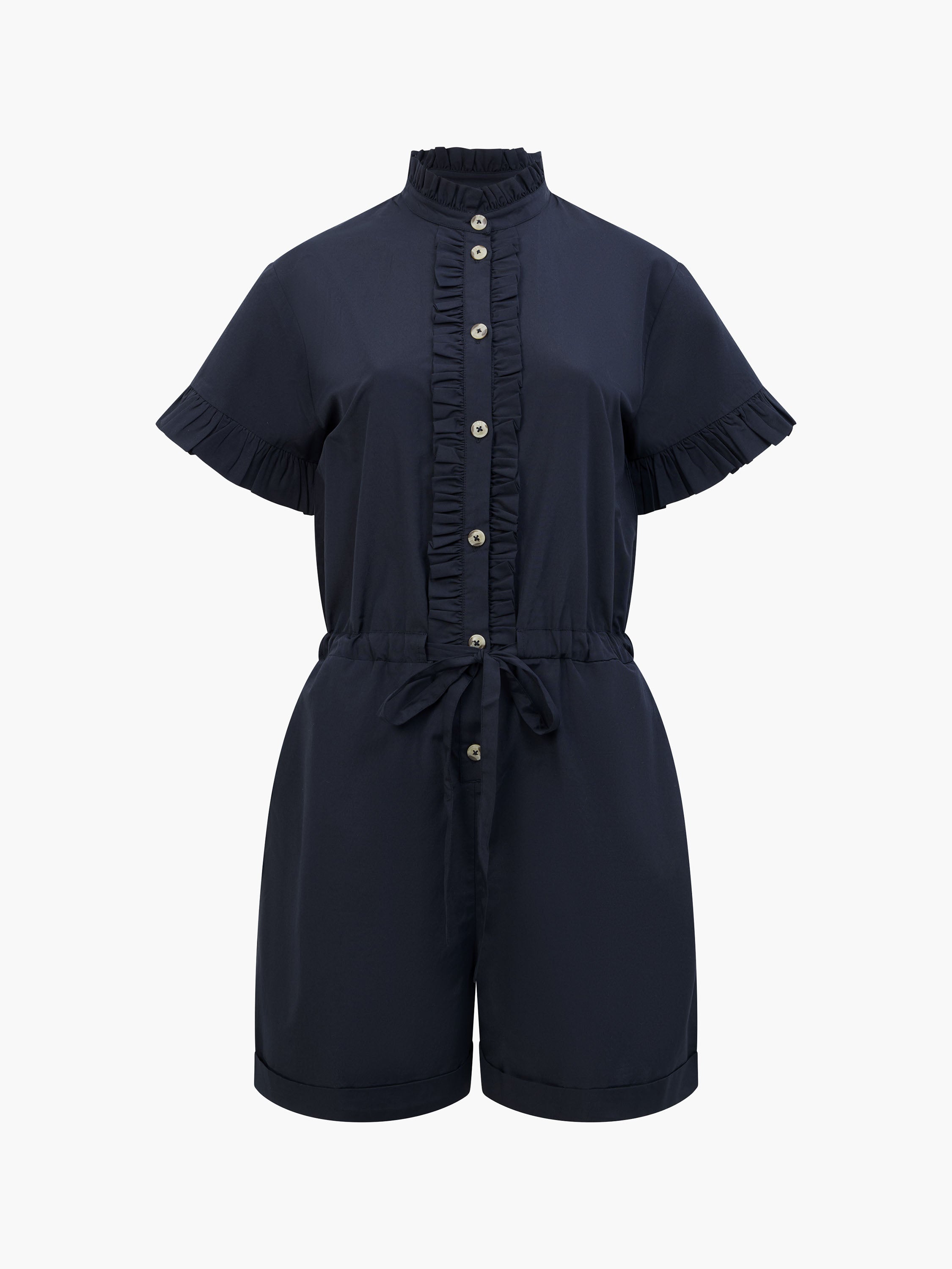 A romantic one-piece wonder made for summer. Our Frill Playsuit has frill trims, short sleeves and button down silhouette, complete with a drawstring elasticated waist and practical side pockets.