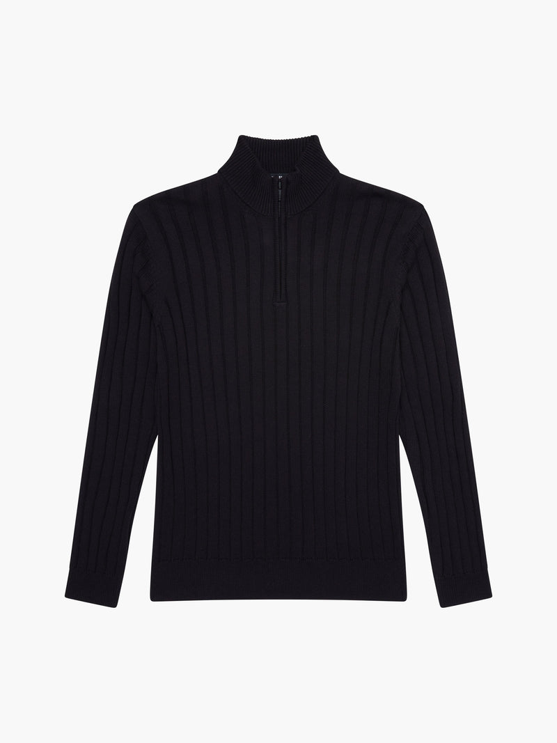 Meet the jumper that means business (and comfort). Our Half Zip Ribbed Knit Jumper features a bold ribbed knit texture, high neck and easy half zip.