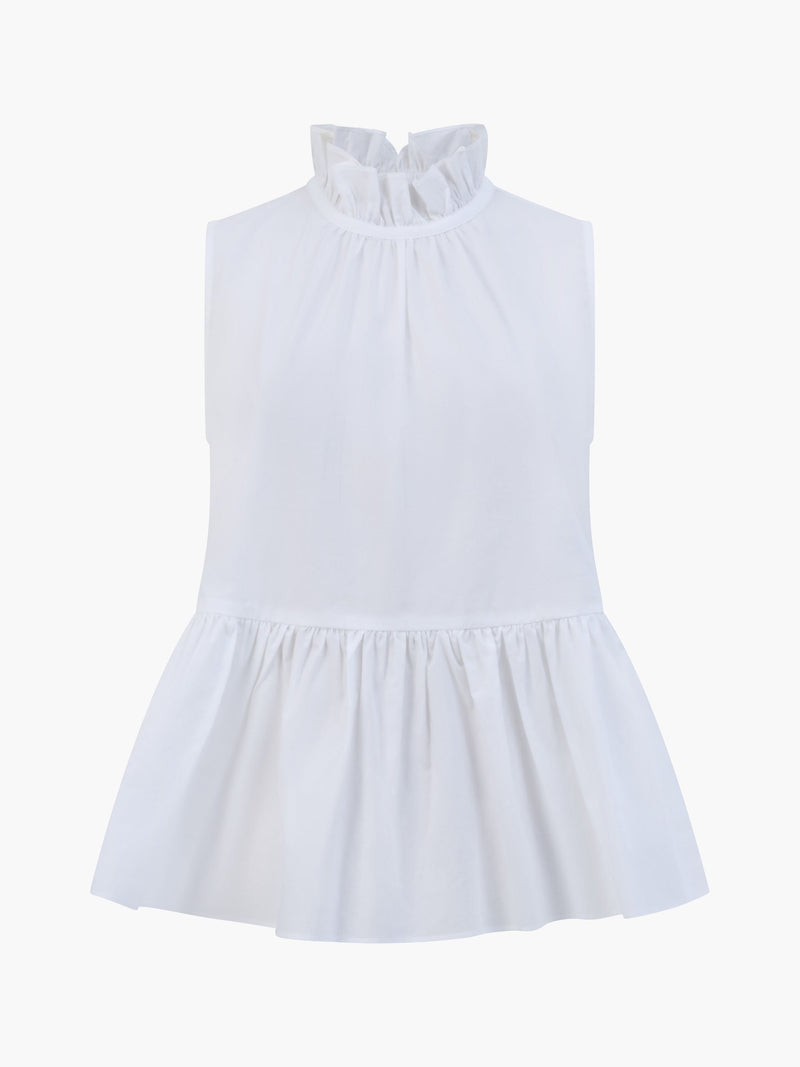Start your wardrobe's summer love story with our High Neck Sleeveless Poplin Top. This sleeveless top stars in lightweight cotton, featuring a romantic frill neckline, tiered hem.