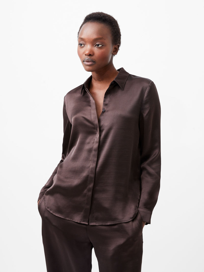 Our Irina Satin Shirt is a chic style to slip into, from workday to weekend soirees. This satin shirt offers a smooth sheen across its classic long sleeve silhouette, framed by a refined collar whilst discreetly fastened by concealed front buttons. Style with our Irina Satin Trousers for a luxe co-ordinating ensemble.