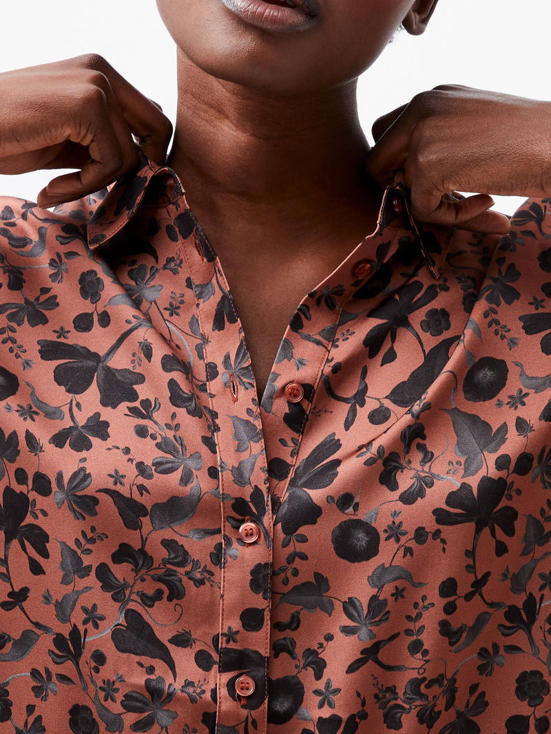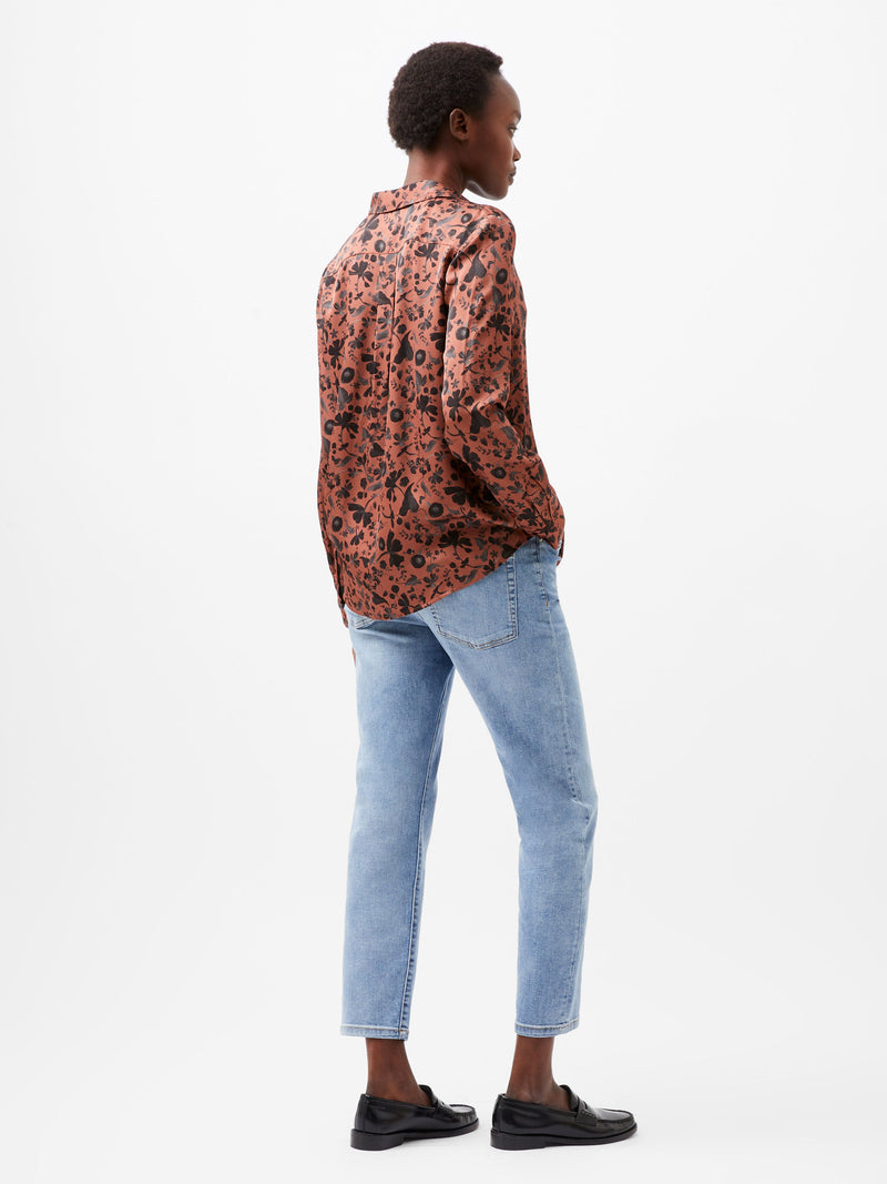 Our Jeannie Ennis Eco Satin Shirt is set to flourish in your wardrobe, both this season and for many more to come. A divine floral print graces this button-through shirt in rich seasonal shades with satin sheen, whilst framed by a collar and long tab sleeves and falling to a rounded hem. Wear alongside our Jeannie Ennis Eco Satin Maxi Skirt for a sophisticated co-ord set.