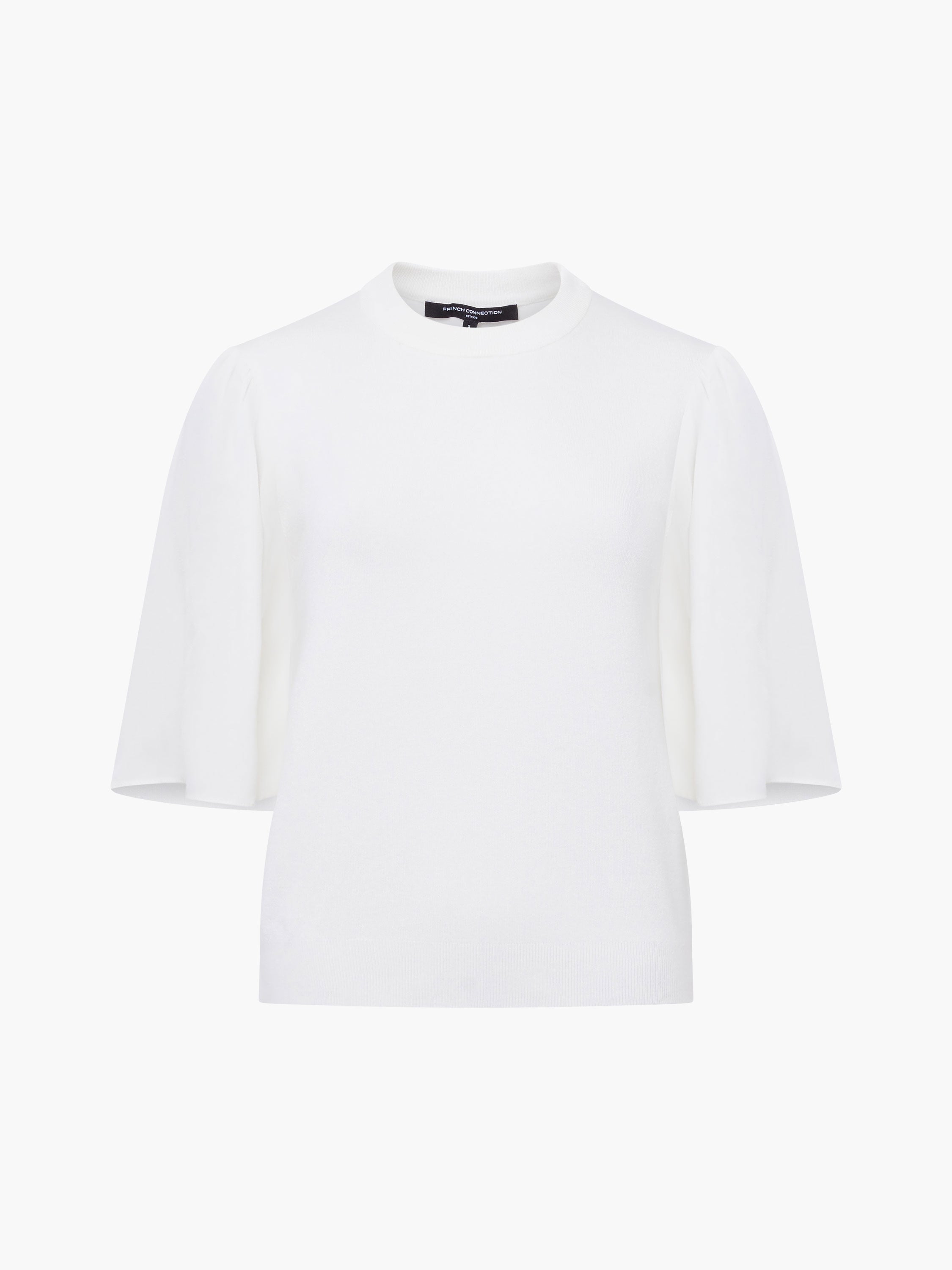 Introducing a soft and sweet favourite, our Krista Knit Round Neck Top. This chic top mixes fabrics, from its smooth knitted bodice to its short flounce sleeves.