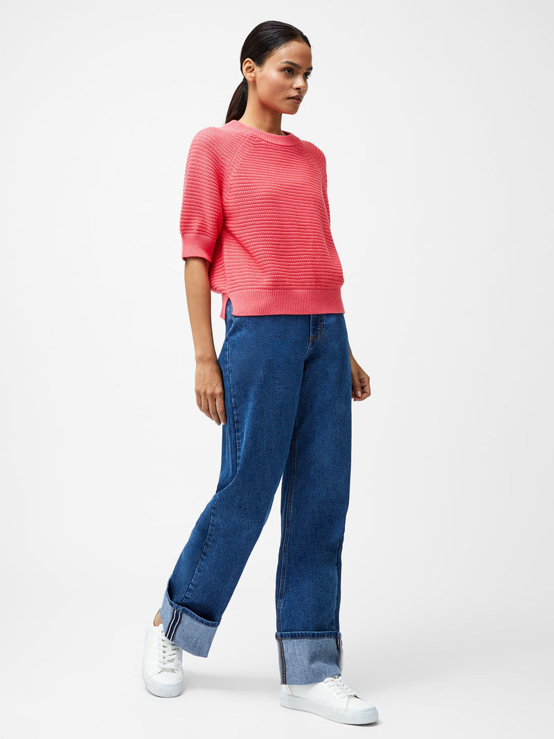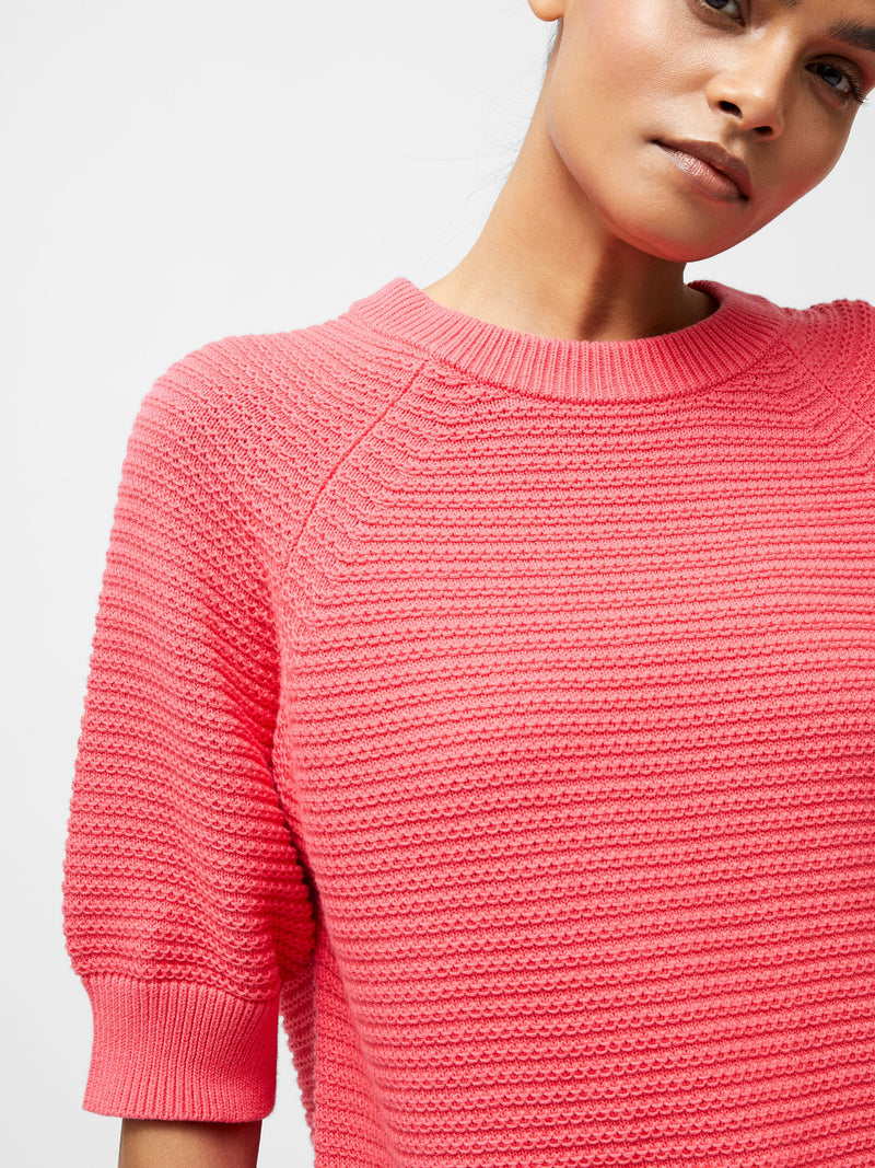Say hello to your knit-to-know this season. Our Lily Crew Neck Short Sleeve Jumper comes in a soft textured knit with elbow length sleeves and classic crew neckline, adding the right mix of laidback and layering potential to your wardrobe.