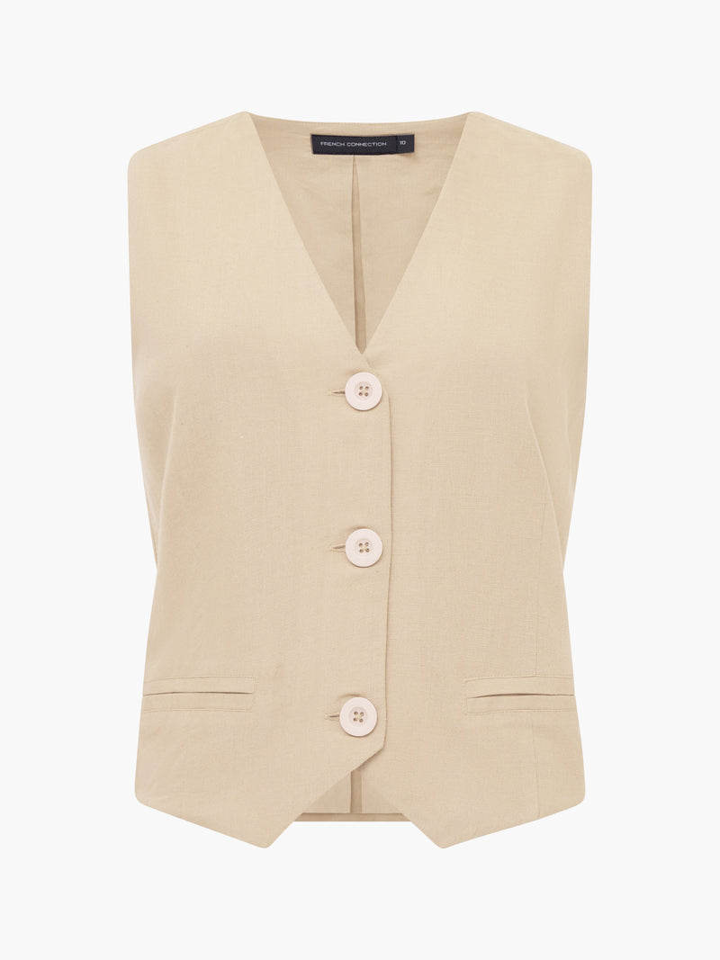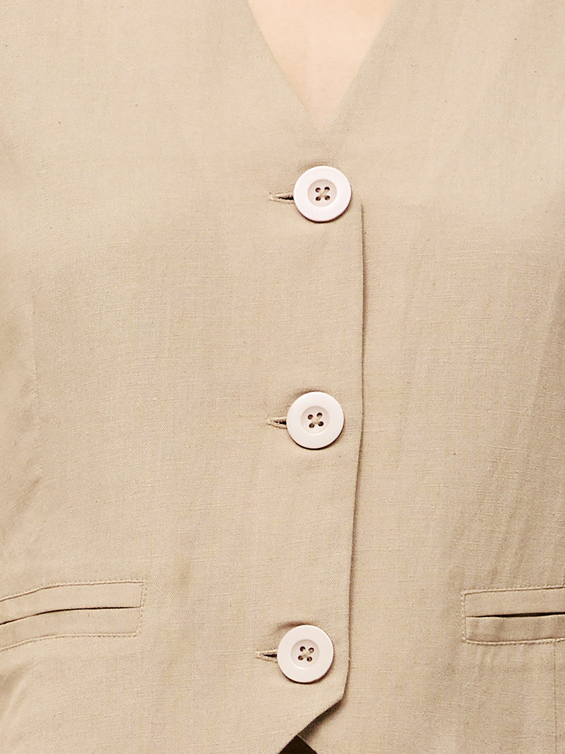 Chic summer styling, made easy. Tailored with a flattering v-neckline, oversized buttons and a sleek pair of faux pockets, our Linen Single Breasted Waistcoat is a structured yet lightweight staple.