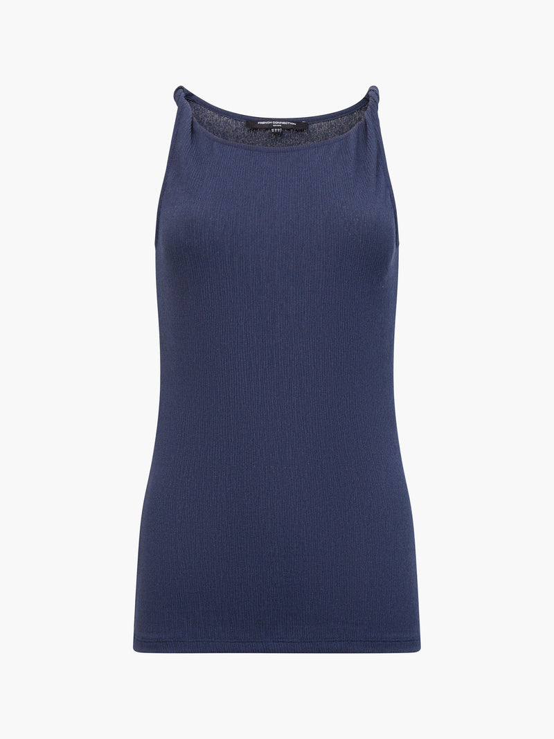 Add texture with a twist to your outfits with our Meera Jersey Boat Neck Twist Straps Top. In textured jersey, this minimalist top features a sleek boat neckline and straps with a twisting design.