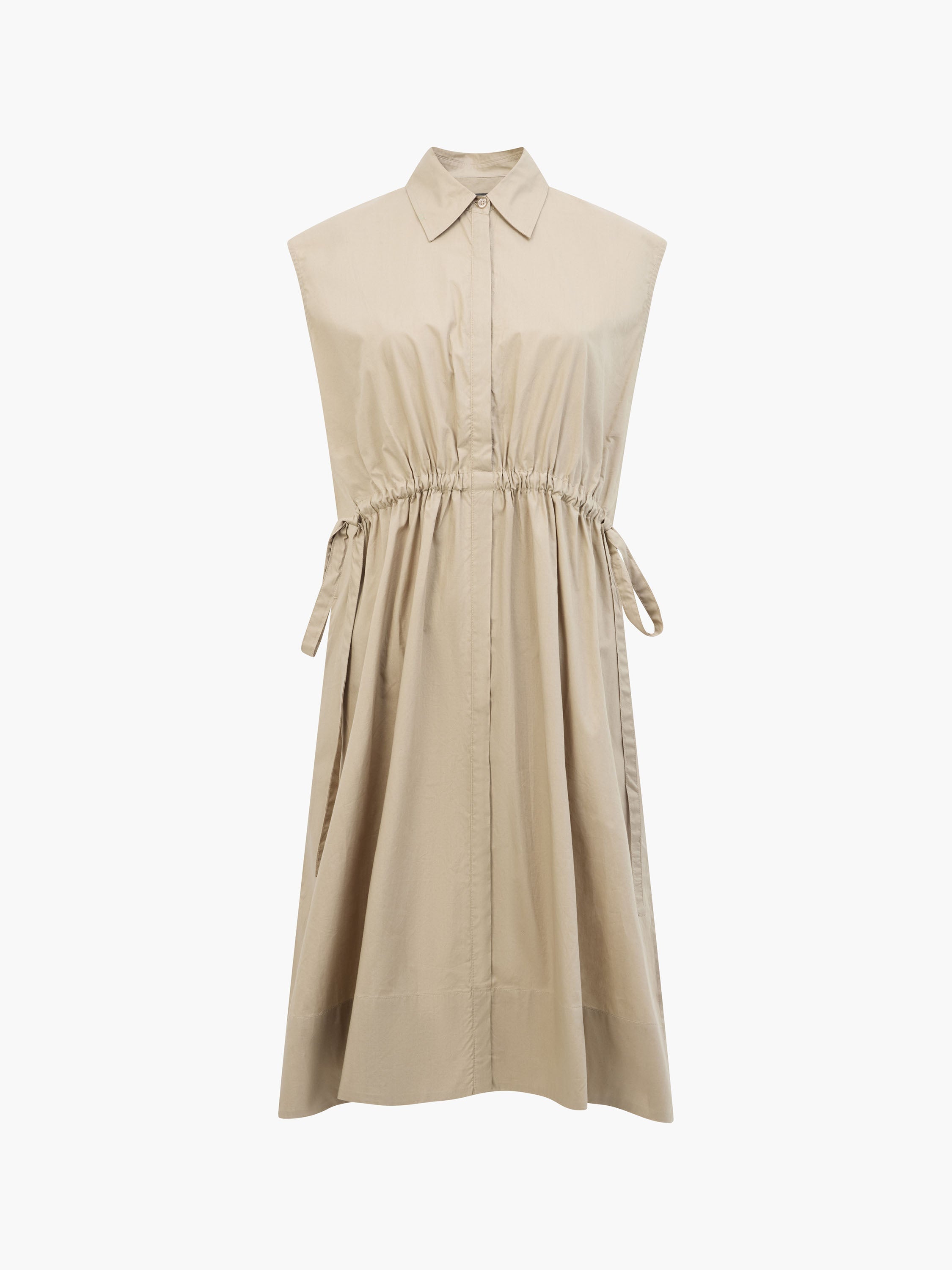 Our Poplin Tie Sleeveless Dress redefines laidback sophistication. This lightweight dress features a sleeveless silhouette complete with collar, concealed buttons, side pockets and a drawstring tie waist.