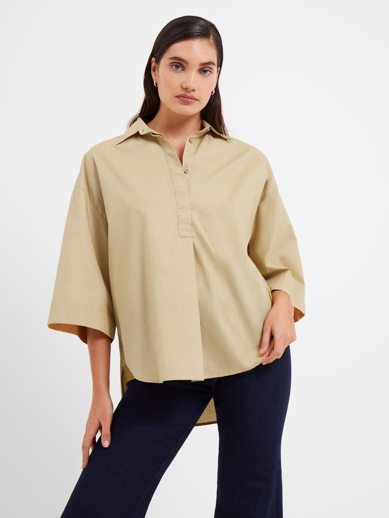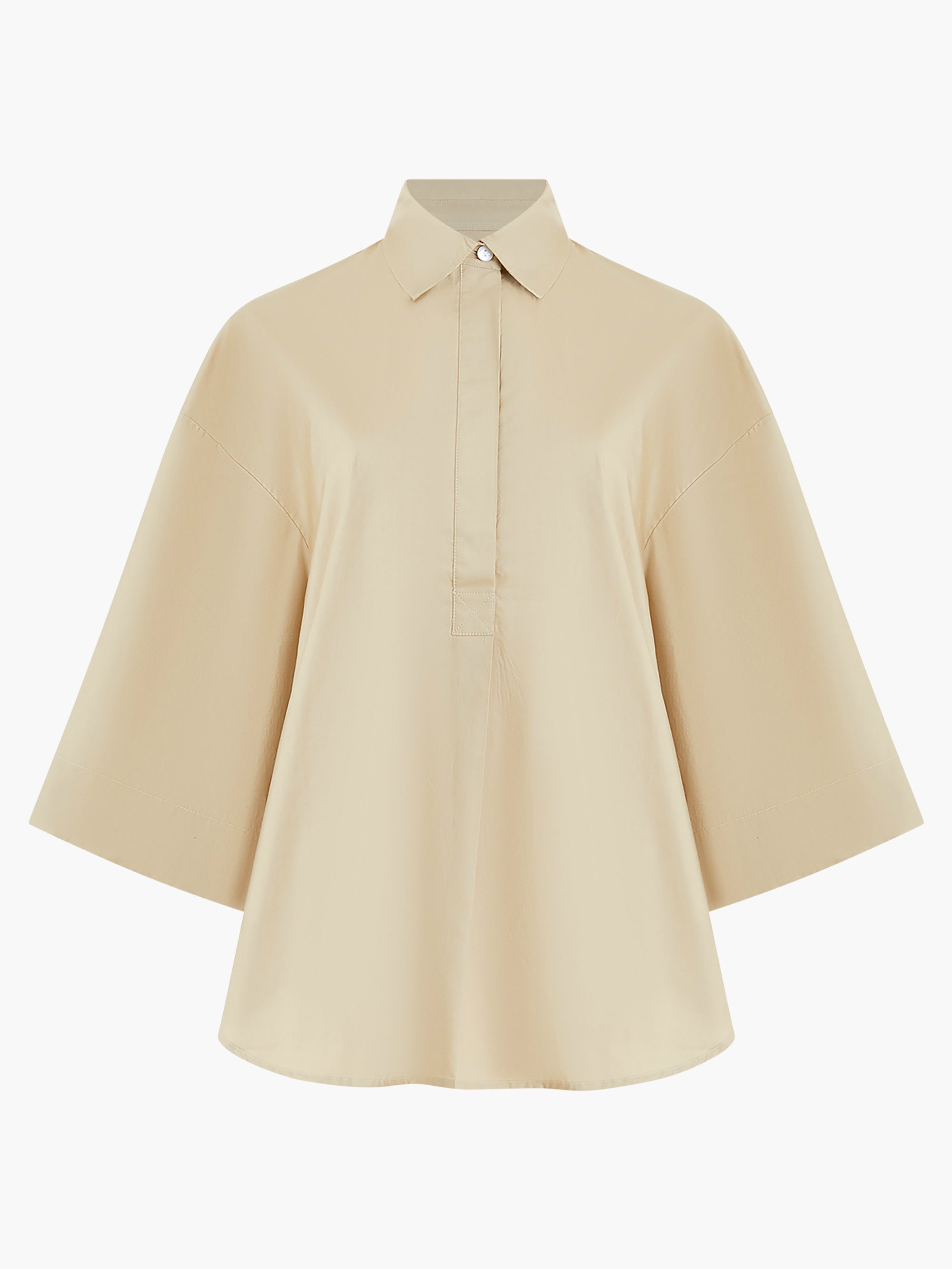We've found the next great addition to your wardrobe. Our Rhodes Poplin Popover Shirt takes a classic and casual popover shirt silhouette and creates it effortlessly with fluted sleeves and a concealed buttoned placket, making this piece ideal for both workdays and weekends.