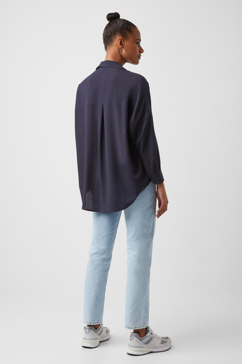 Our best-selling popover shirt has been given a new season update with a lightweight crepe feel fabric - introducing our Rhodes Recycled Crepe Popover Shirt. This loose-fitting slip on shirt is given a draped look, complementing the casual silhouette complete with point collar, v-neckline and buttonless placket. Pair the long-sleeved shirt with everything from culottes to favourite denim for a year-round essential.