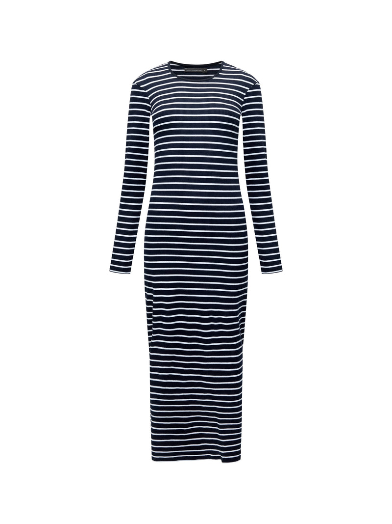 Ribbed Stripe Long Sleeve Midi Dress Ribbed Stripe Long Sleeve Midi Dress