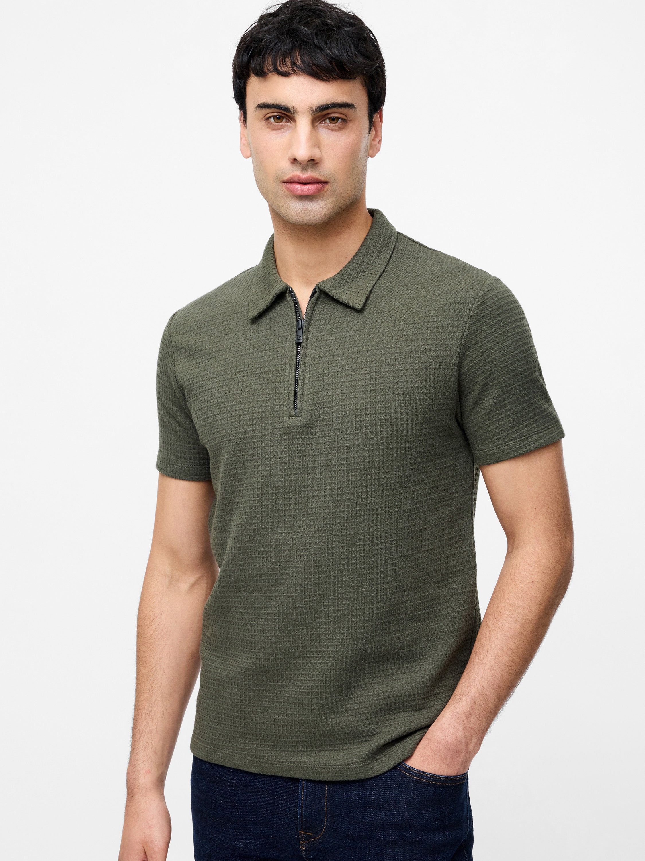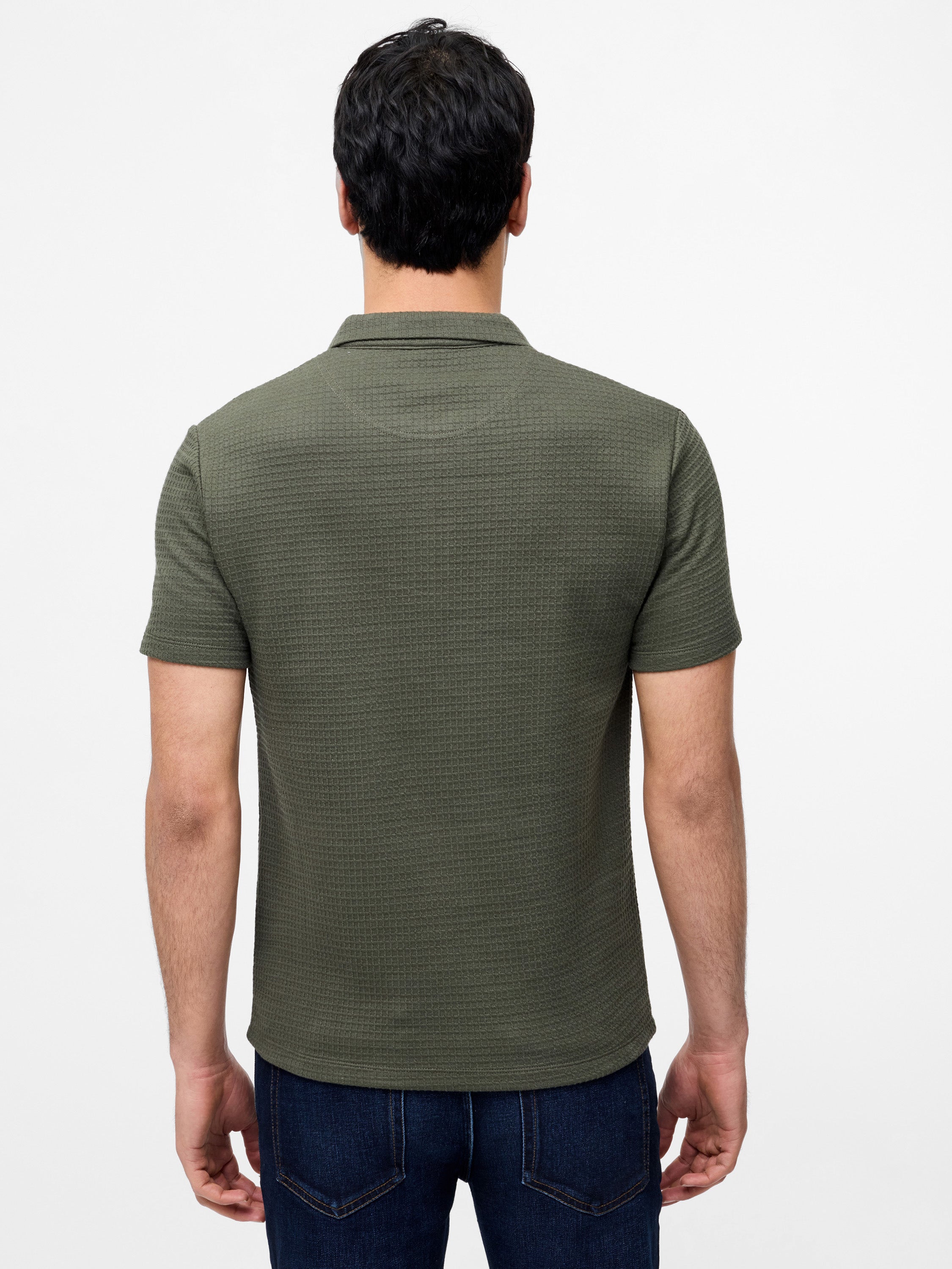 Jacquard Waffle Zip Polo Shirt Jacquard Waffle Zip Polo Shirt