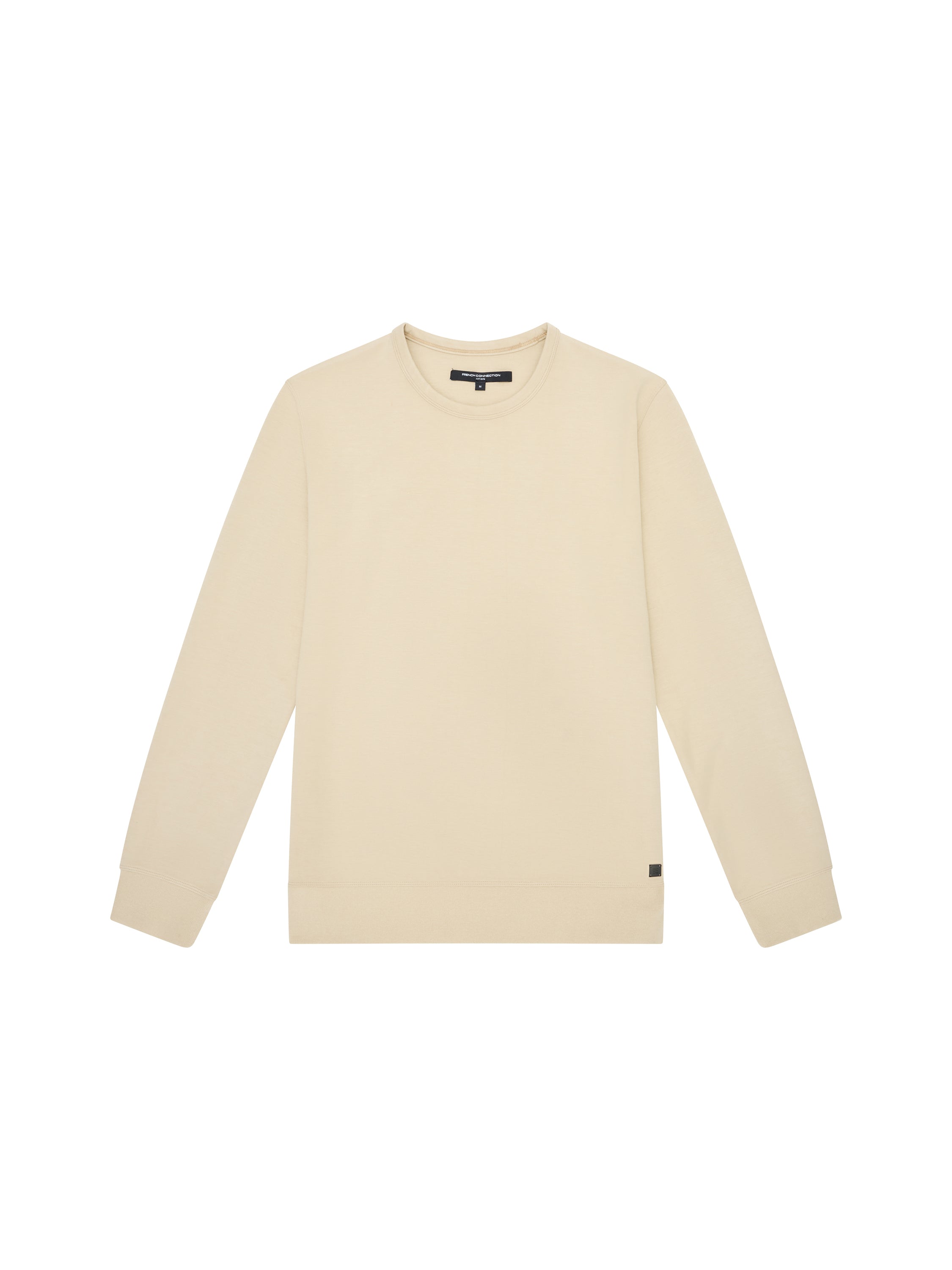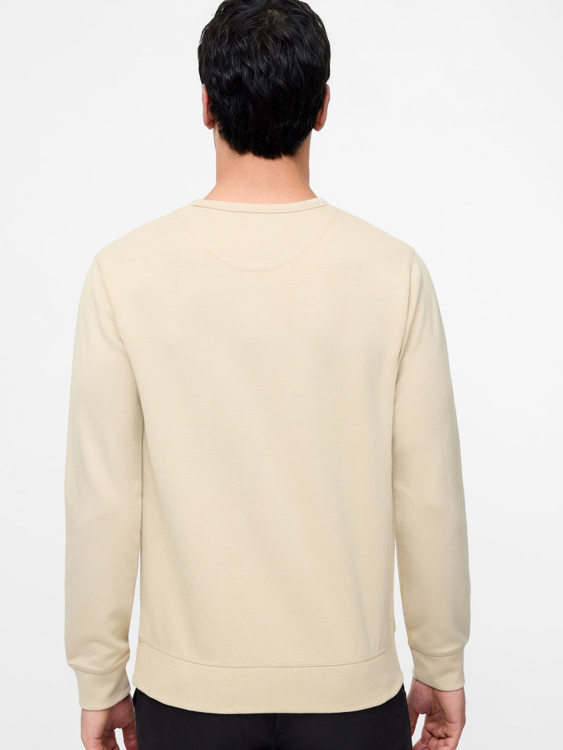Our Triblend Interlock Crew T-Shirt features long sleeves and a round neckline in a sand beige material.