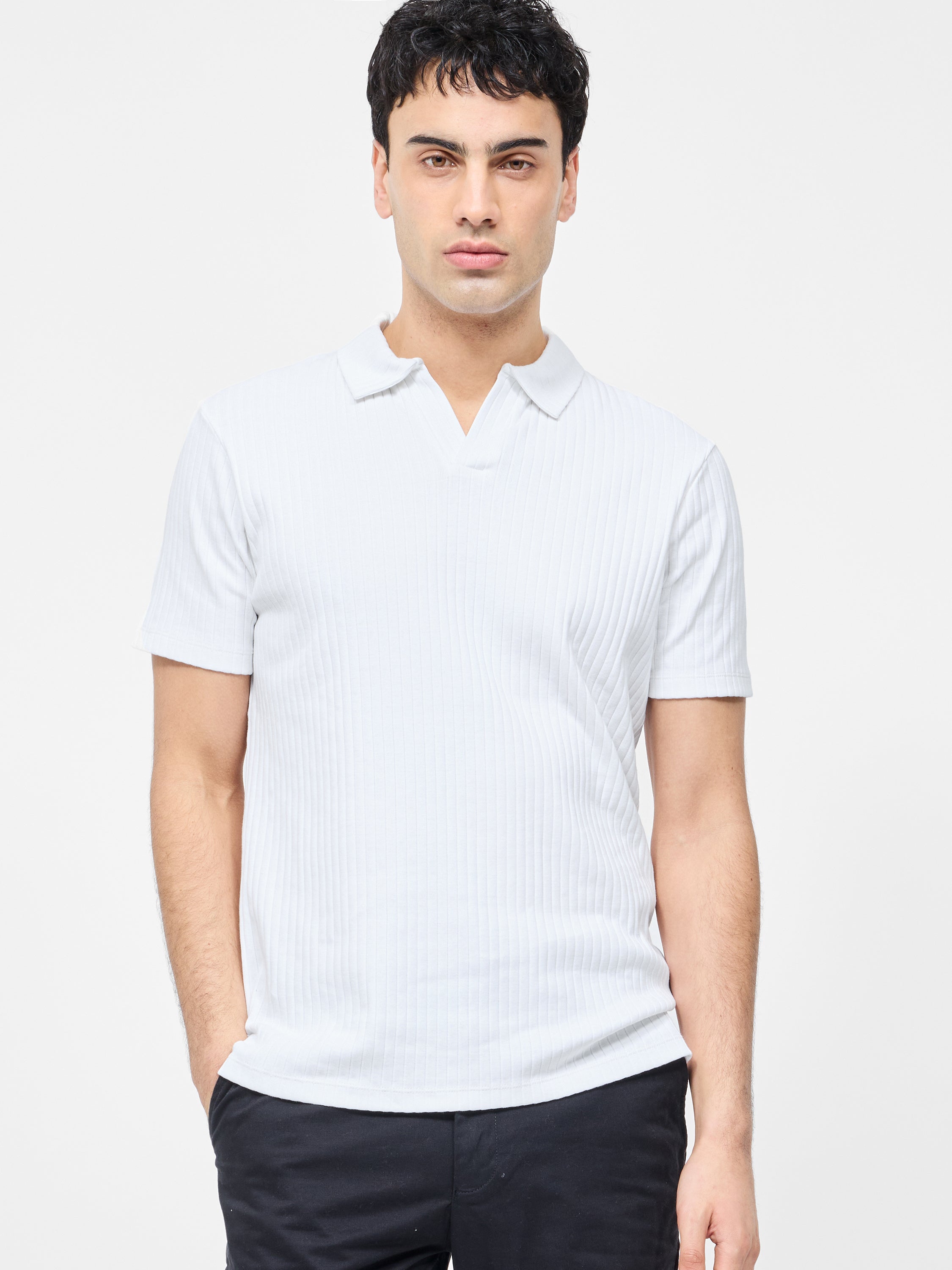 Hello, texture. Our Variated Rib Short Sleeve Polo Shirt features short sleeves, soft ribbed texture and a modern open placket.