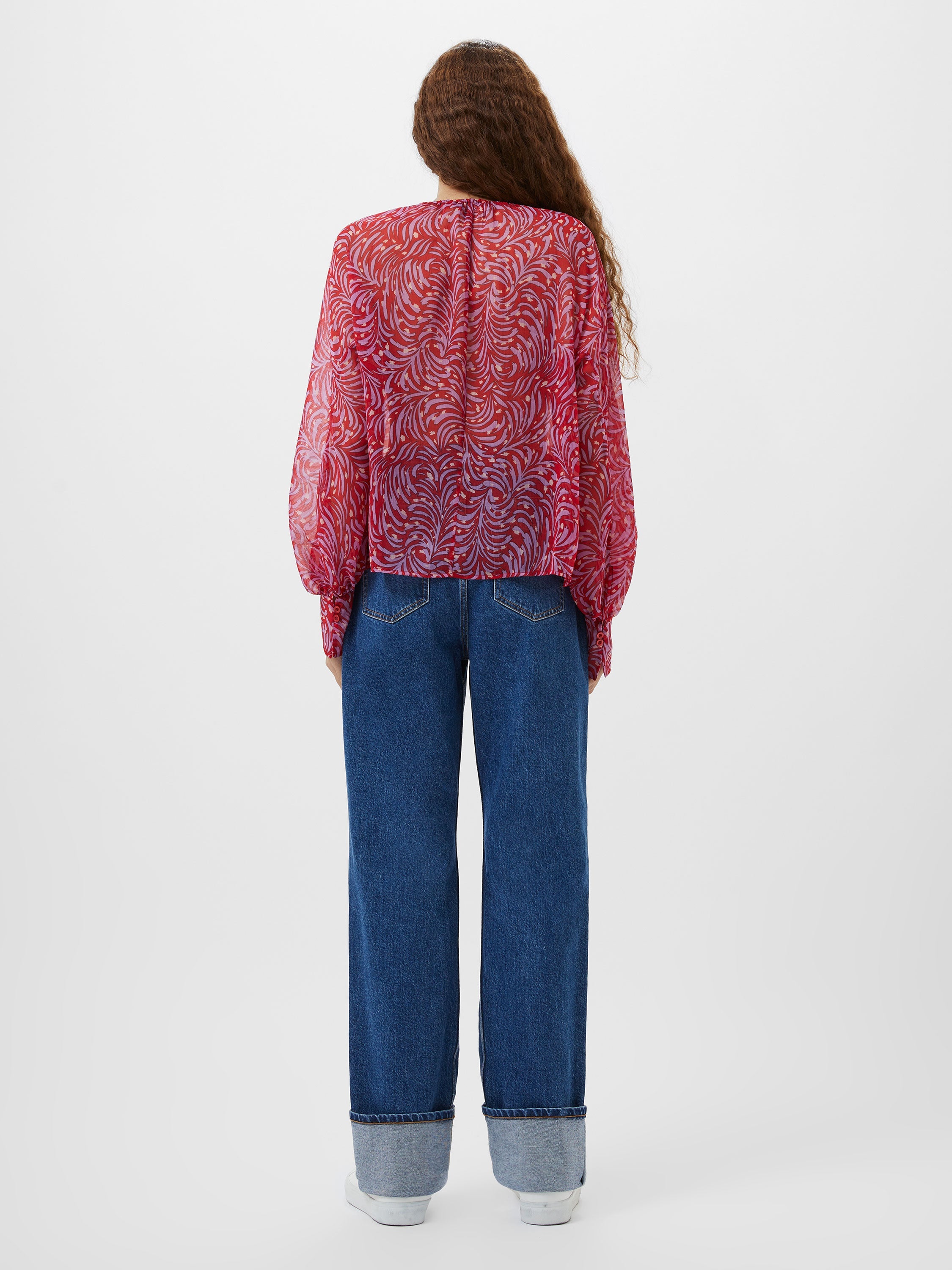 Our Printed Chiffon Keyhole Long Sleeve Top is a style set to brighten up your wardrobe. This semi-sheer chiffon top, graced with a vibrant jacquard print, features long balloon sleeves, a self-tie neckline and a keyhole cut out.