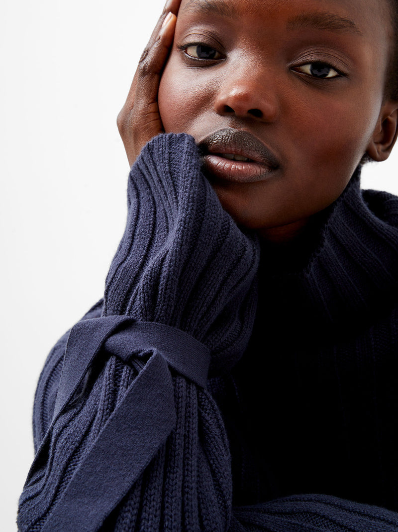 A soft jumper is a knitwear necessity in every wardrobe. Our Babysoft Tie Sleeve Jumper elevates the everyday essential in a sumptuous ribbed knit, framed by a modish high neckline and long sleeves accentuated by self tie cuff detailing. This stylish jumper is the ideal transitional piece for day to night ensembles.