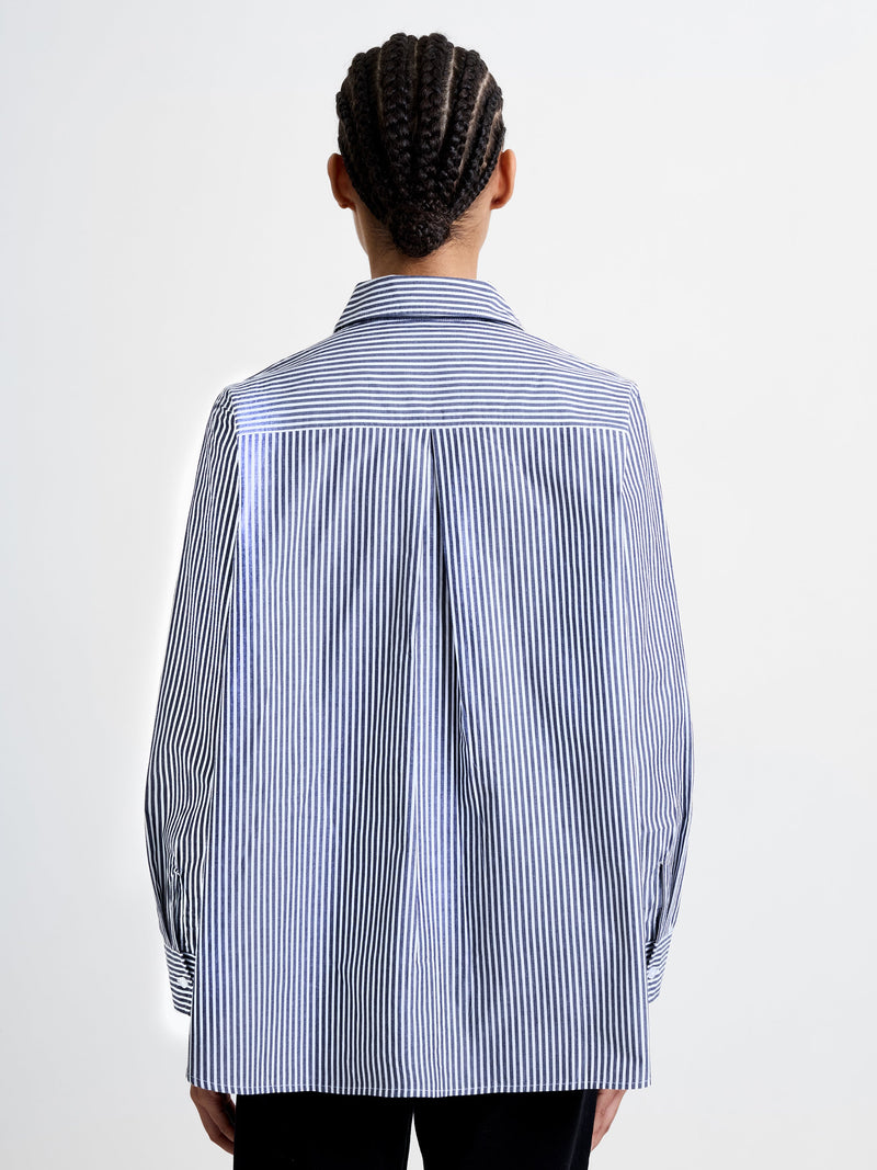 Introducing our new striped staple style. Our Stripe Buttoned Popover Shirt offers an oversized silhouette featuring a collar, concealed buttons and a single chest pocket.