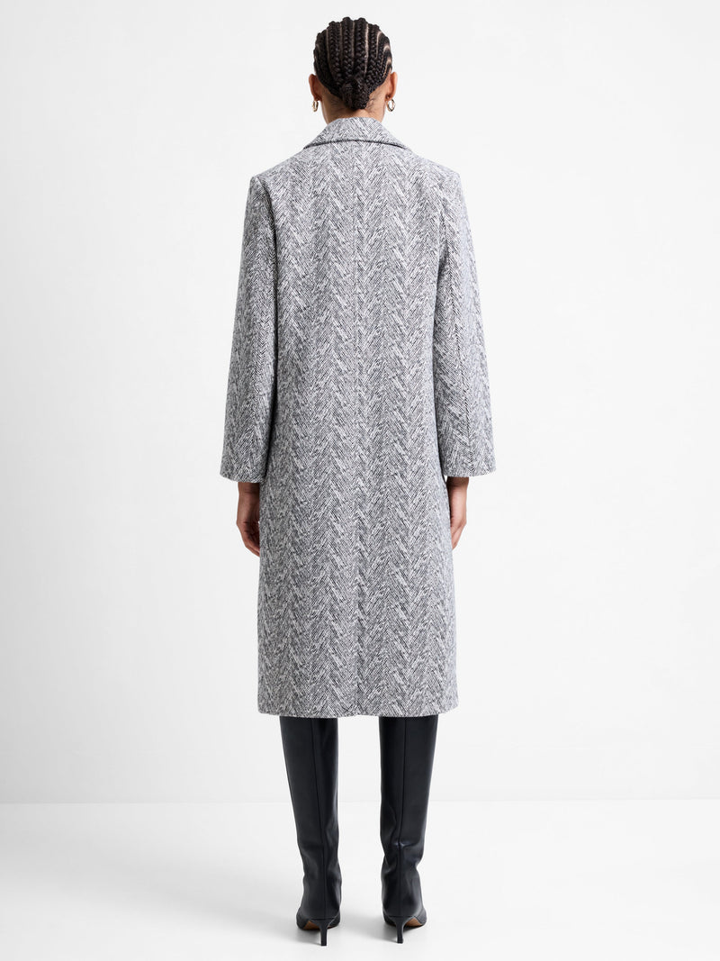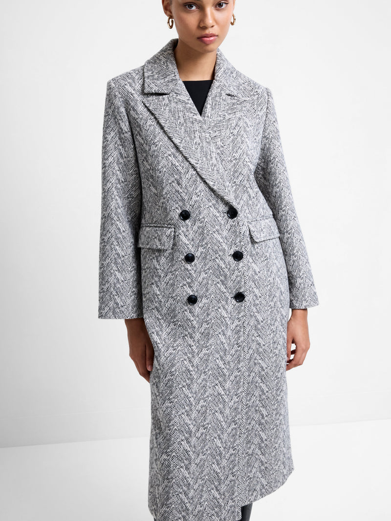 Layer up in elegance. Our timeless Lowen Wool Double Breasted Coat showcases a chic herringbone pattern in a flattering longline silhouette, featuring a double breasted fastening and flap front pockets.