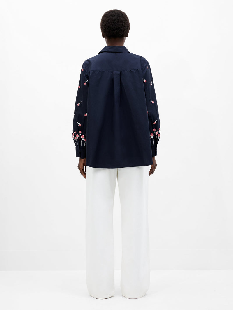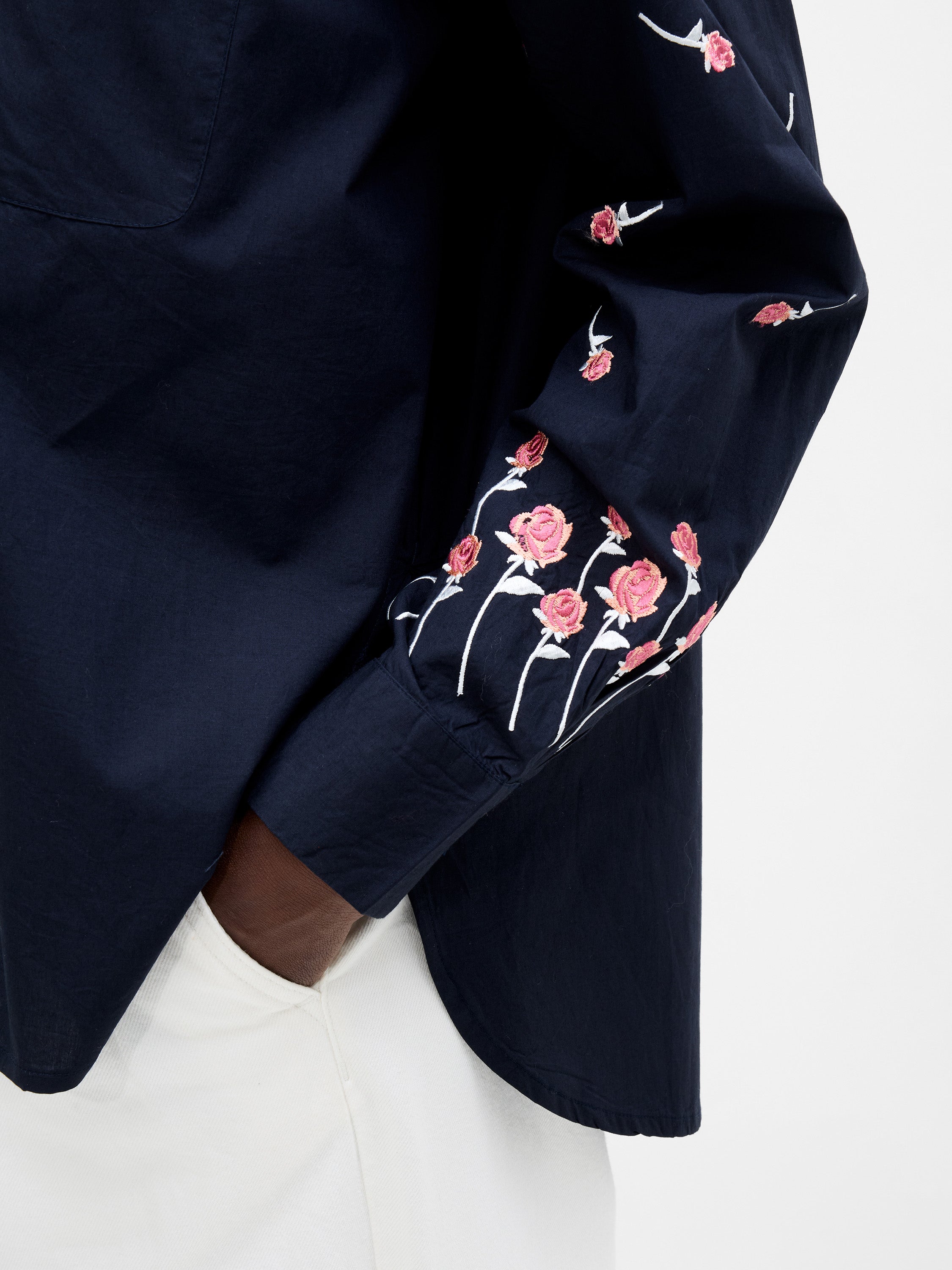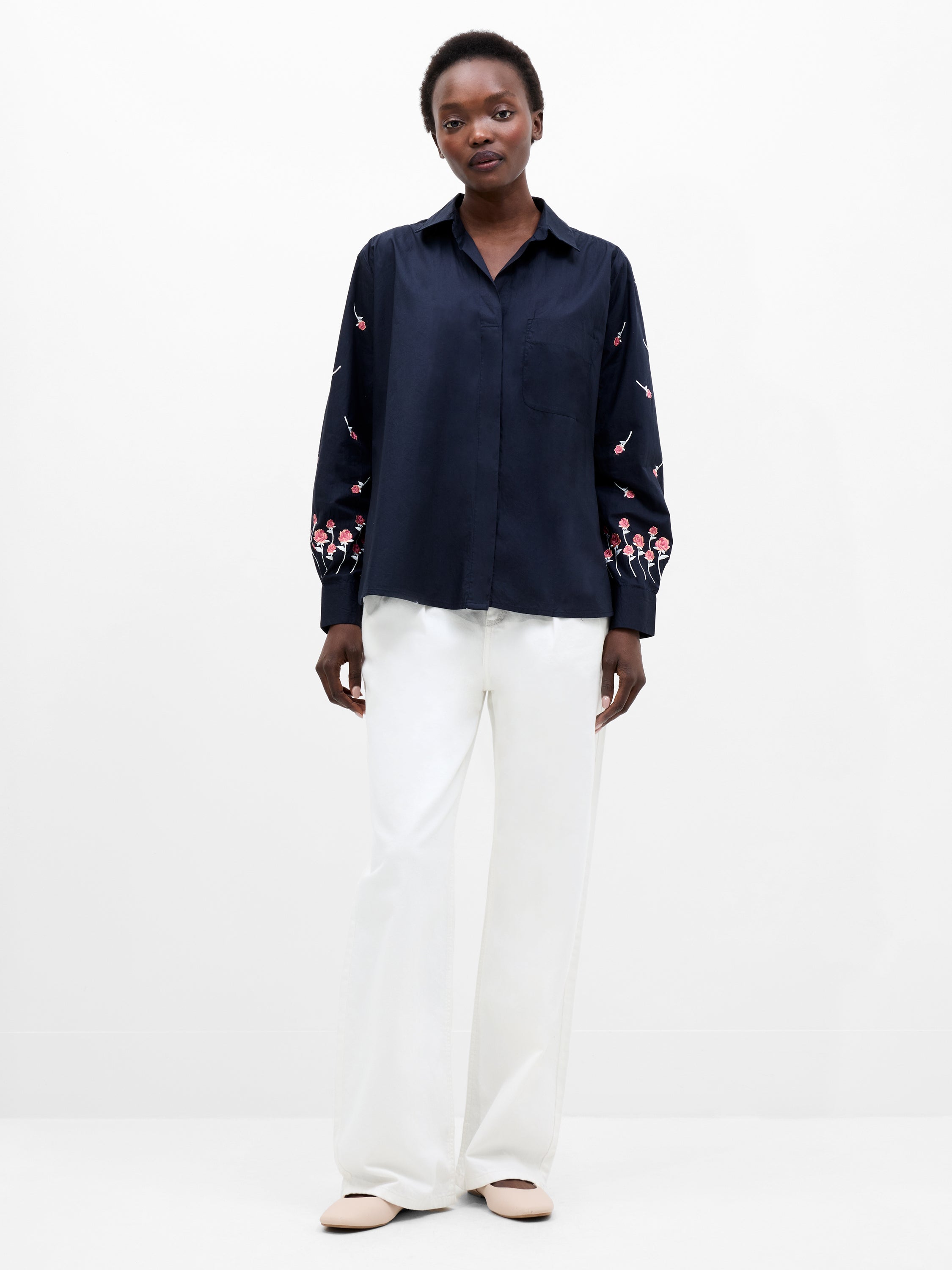 Our Embroidery Detailed Long Sleeve Shirt puts a feminine flourish on a fresh white shirt. This shirt is elevated by floral embroidery on its long sleeves, and has classic features from a refined collar and breast pocket to concealed button through fastening.