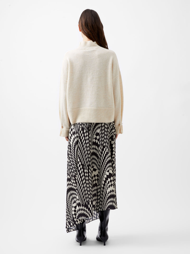 Elevate your soft knits for the season with our Kezia Pearl Cuff Detail Jumper. This sweet jumper poses in relaxed elegance with a mock neck and pair of long sleeves, graced with gleaming faux pearl details upon the cuffs.